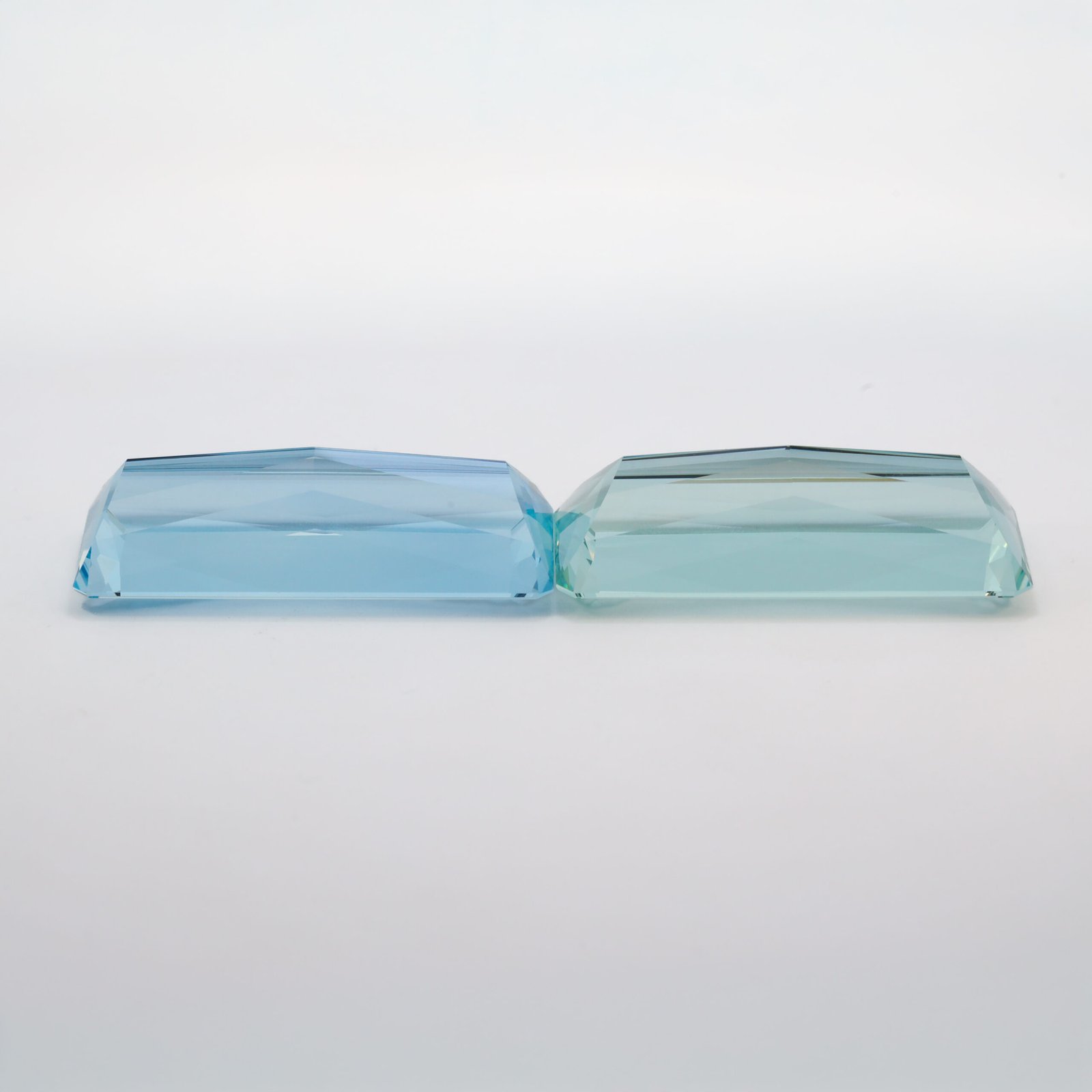 Unveiling a true miracle of nature and lapidary art: a monumental 245.72-carat pair of Natural Beryl Aquamarines. Sourced from the legendary mines of Brazil, these titans exhibit a sophisticated Blue-Green palette reminiscent of the deep Atlantic.