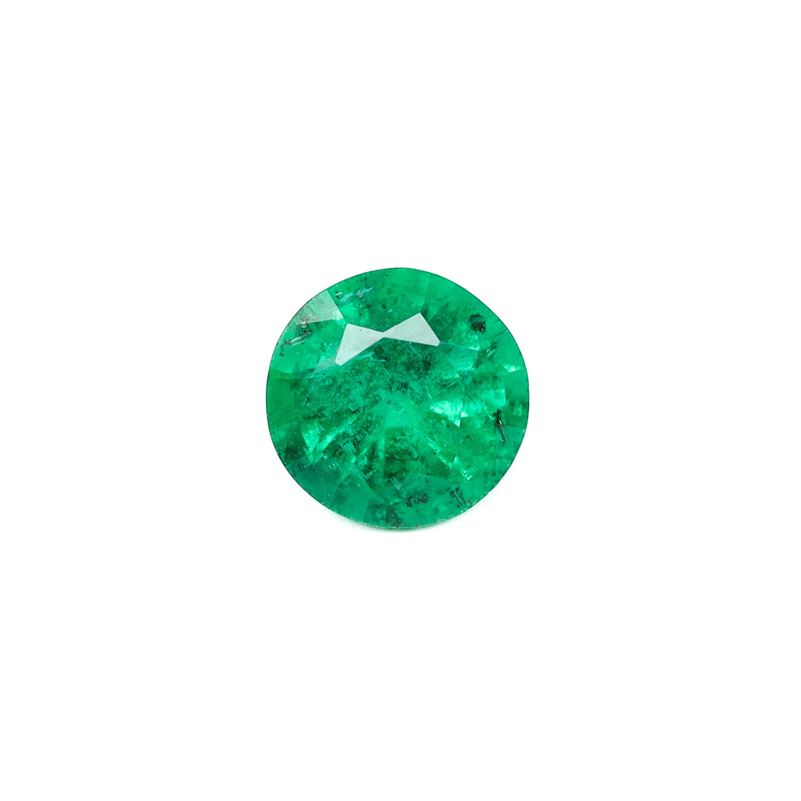 Faceted into a round shape, this emerald offers a timeless symmetry and a level of brilliance that is less common in emerald-cut stones. At nearly 0.90 carats and with a diameter of approximately 6.40mm, it possesses a significant visual “face” that makes it appear substantial in any setting. Treated only with minor oil, the professional industry standard, the stone retains its natural integrity and luster. While a minor feather inclusion is present (SI clarity), the gem remains bright and lively, perfect for a signature piece of jewelry.